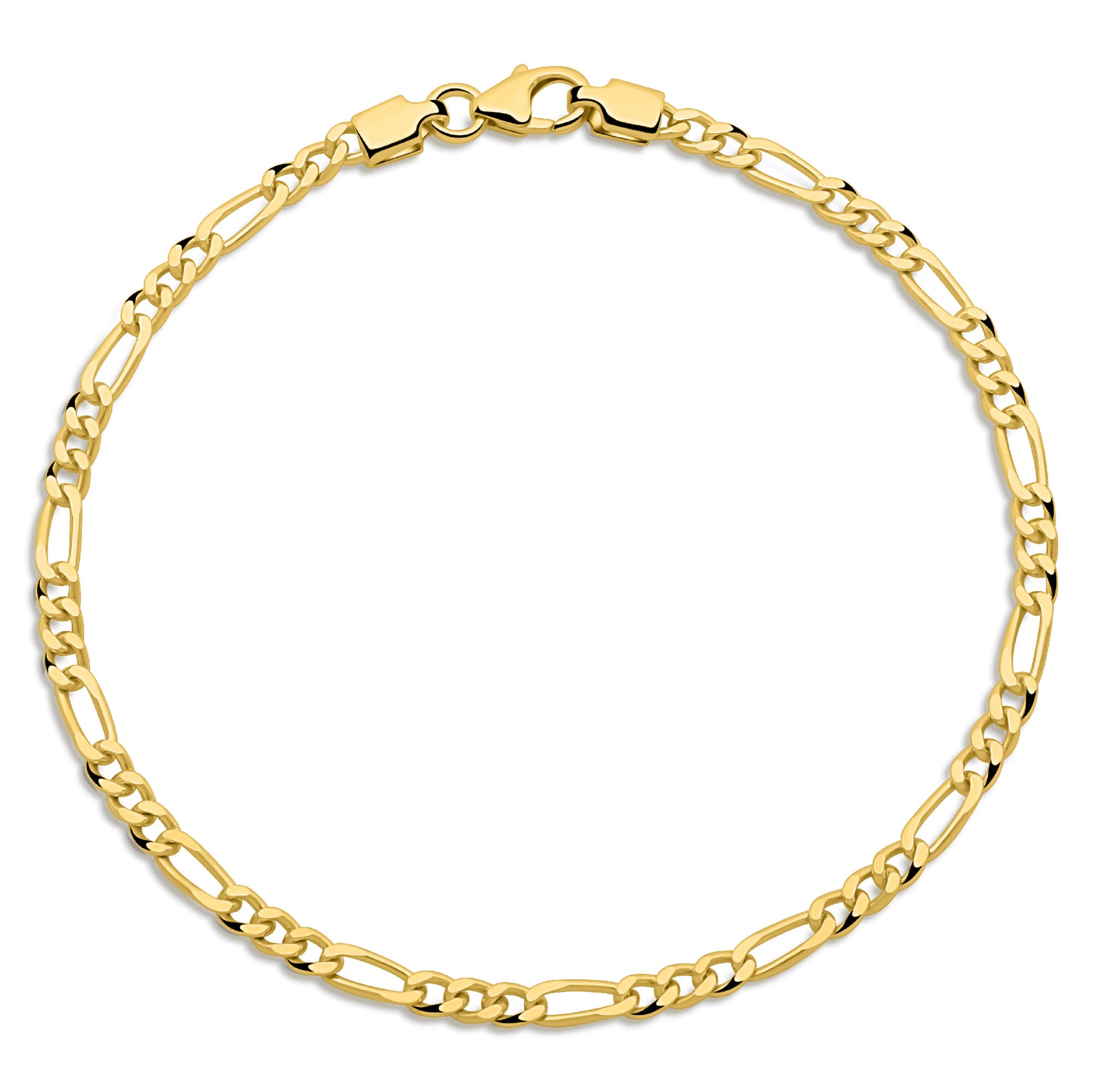 Dieses edle Figaroarmband aus 585er vergoldetem Material vereint filigrane Eleganz mit klassischem Design. Mit seiner 3 mm Breite wirkt es dezent und dennoch stilvoll, ideal für jeden Tag oder besondere Anlässe. Ein zeitloses Schmuckstück, das jedem Look einen Hauch von Luxus verleiht.
