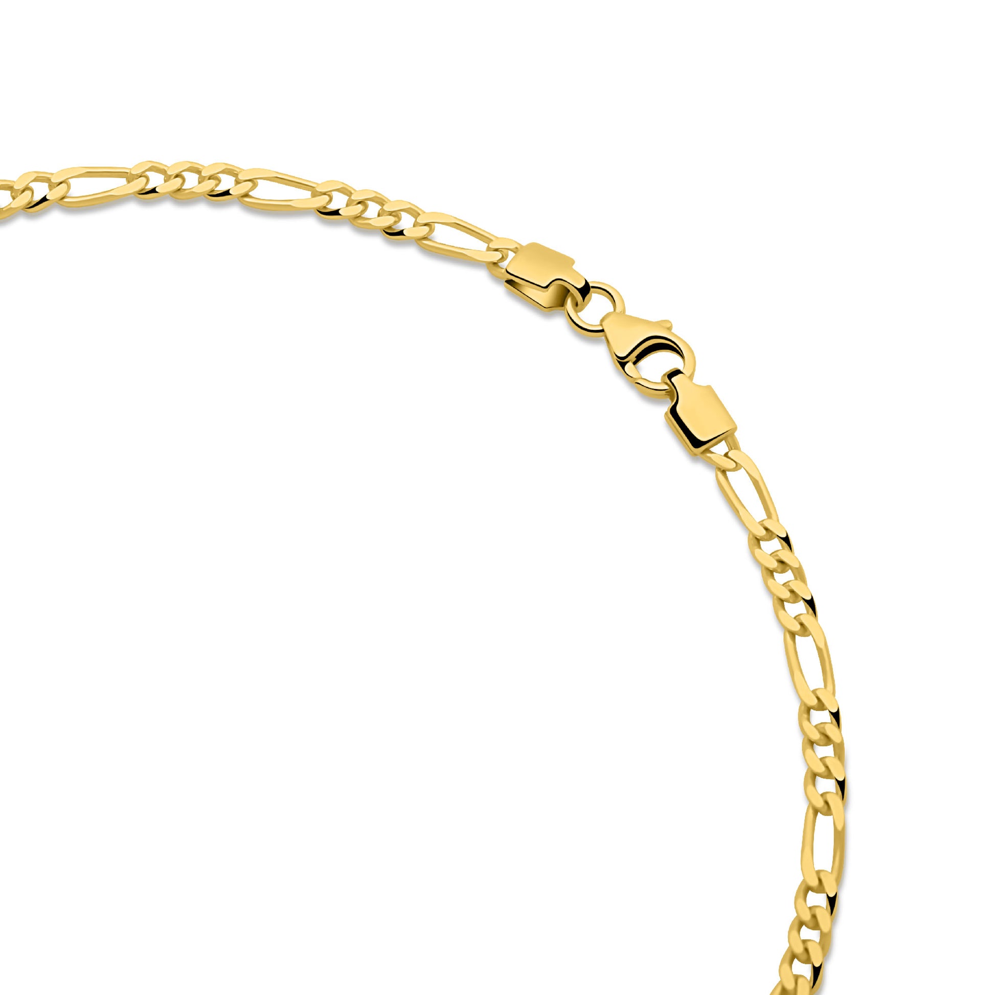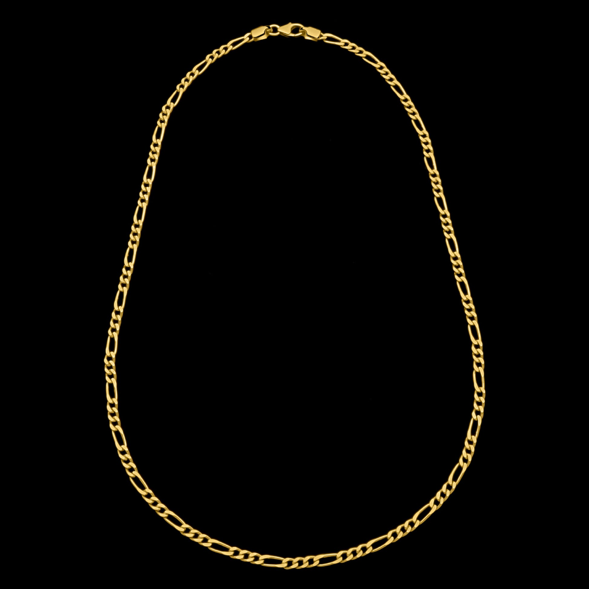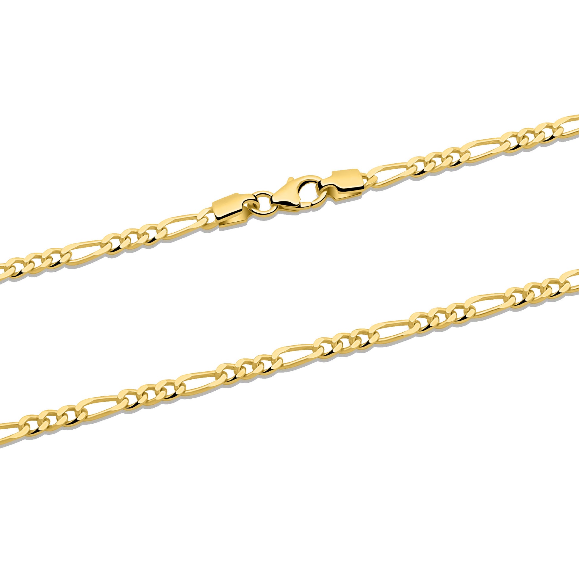 Diese filigrane Figarokette aus 585er vergoldetem Messing besticht durch ihr klassisches Design und feinen Glanz. Mit ihrer 3 mm Breite wirkt sie dezent und elegant, perfekt für den Alltag oder besondere Anlässe. Ein zeitloses Schmuckstück, das jedem Look eine edle Note verleiht.