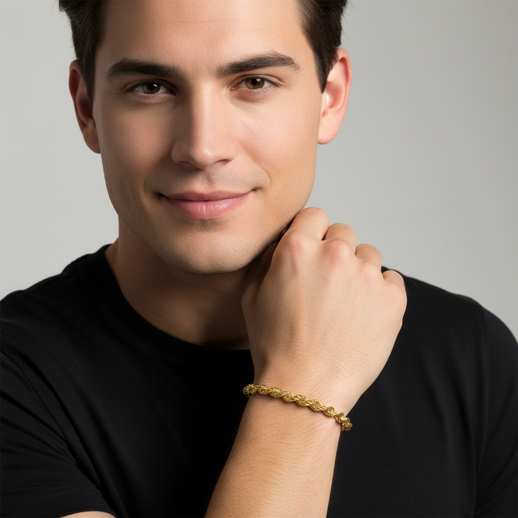 Kordelarmband 6 mm Echt 585er Vergoldet 14 Karat Massiv