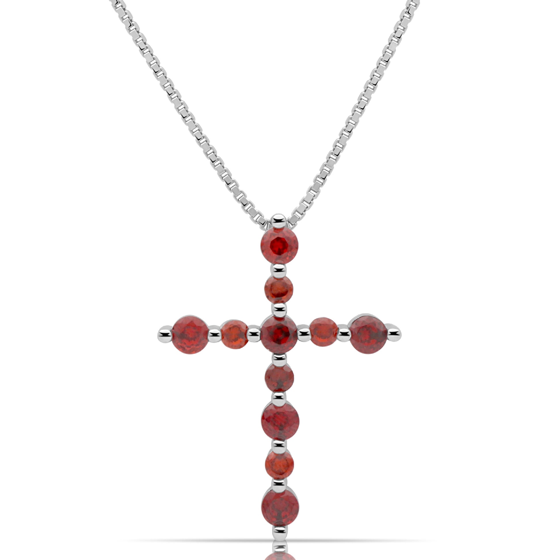 Kreuz Kette Zirkonia Stein Rot 925er Silber