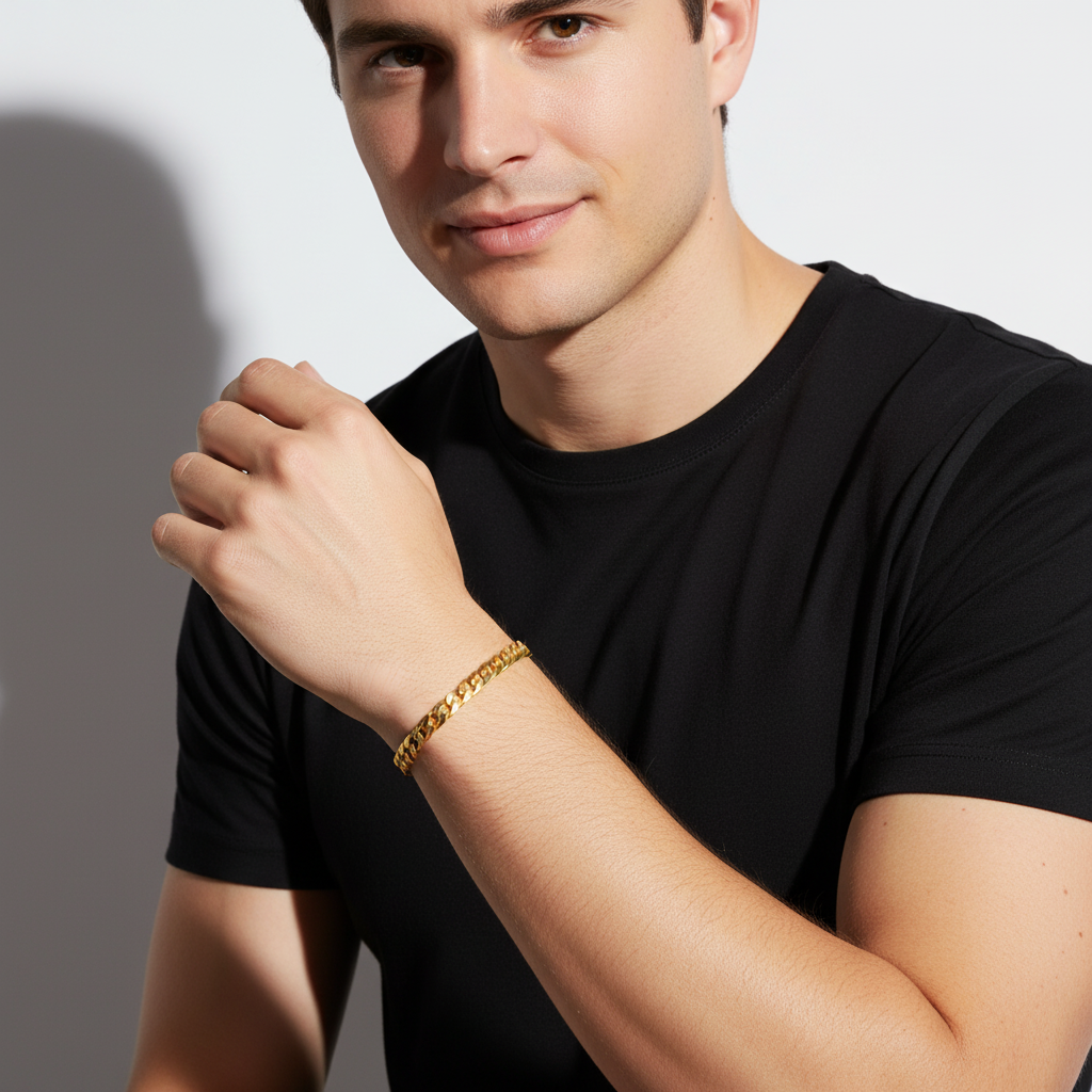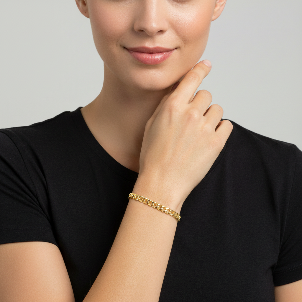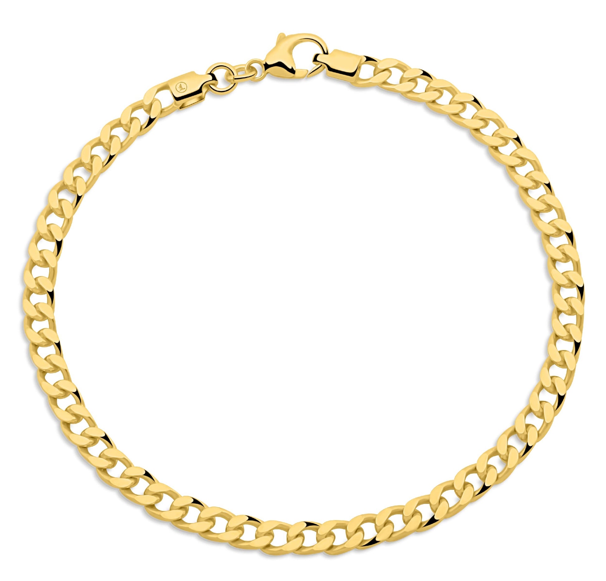 Dieses 4 mm breite Panzerarmband besticht durch sein klassisches Design und die edle 585er Vergoldung mit hochglanzpolierter Oberfläche. Gefertigt in Italien und mit Karabinerverschluss versehen, vereint es stilvolle Optik mit hochwertiger Verarbeitung.