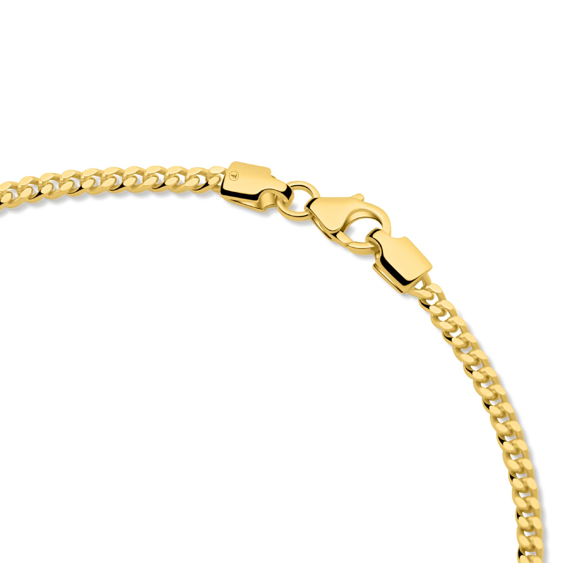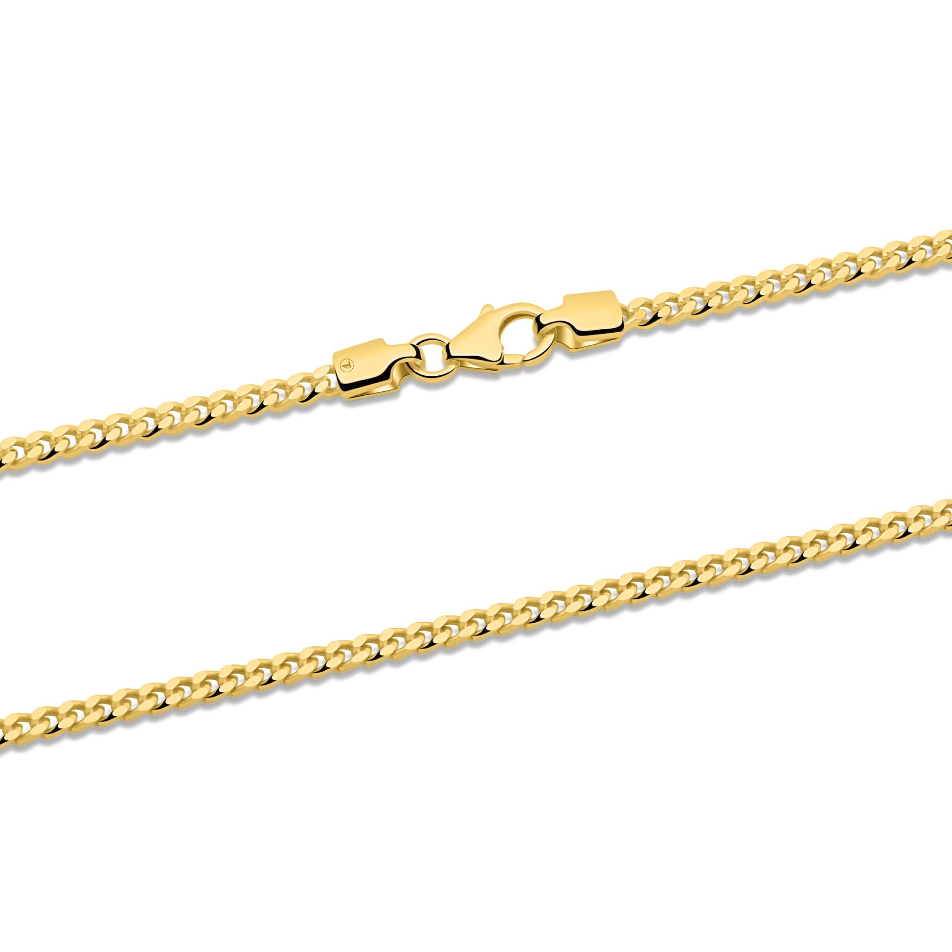 Elegante 2mm Panzerkette mit hochwertiger 14 Karat Vergoldung: zeitloses Accessoire mit edlem Glanz. Die feine Gliederstruktur sorgt für einen klassischen Look und angenehmen Tragekomfort. Ideal als dezenter Halsschmuck oder zum Kombinieren mit Anhängern.