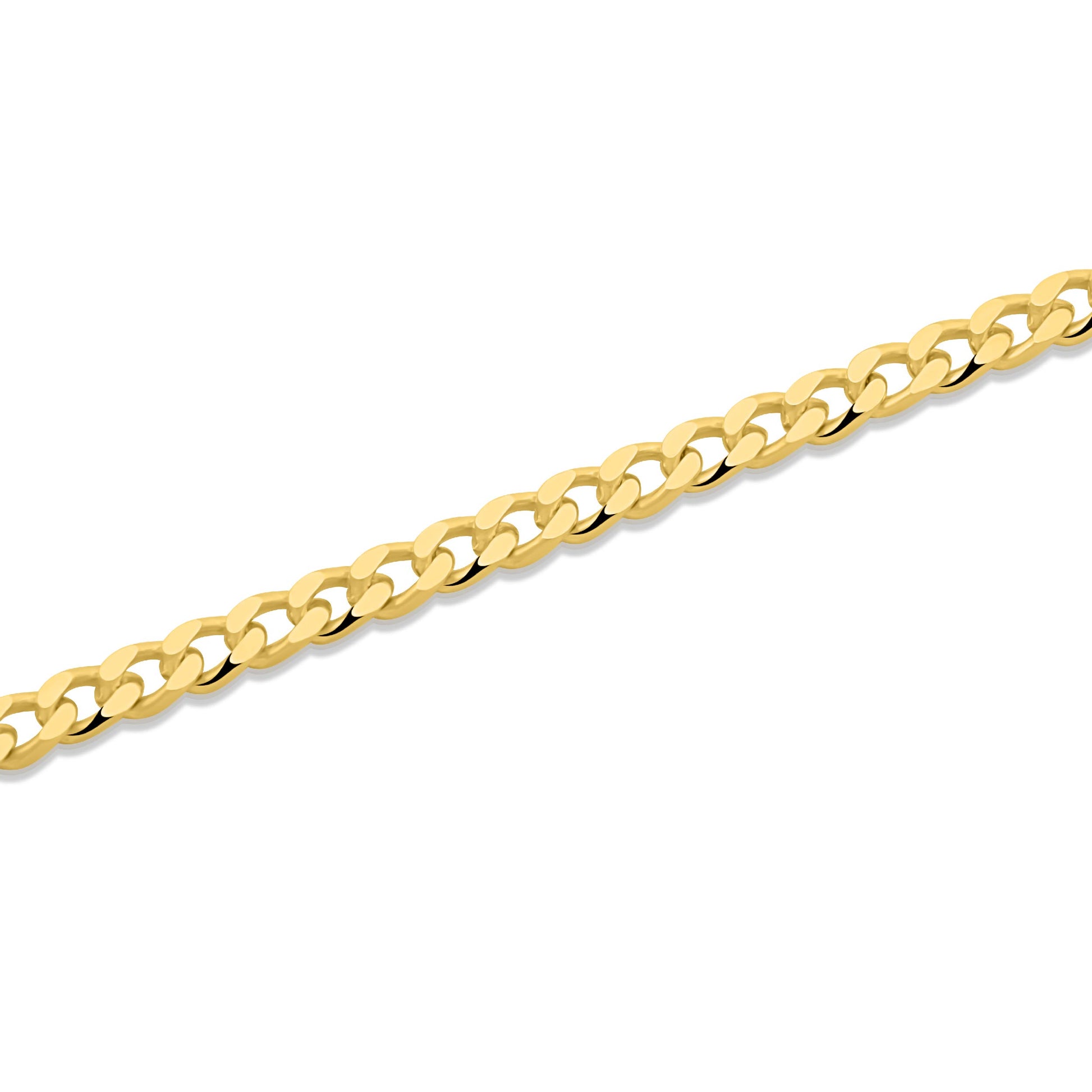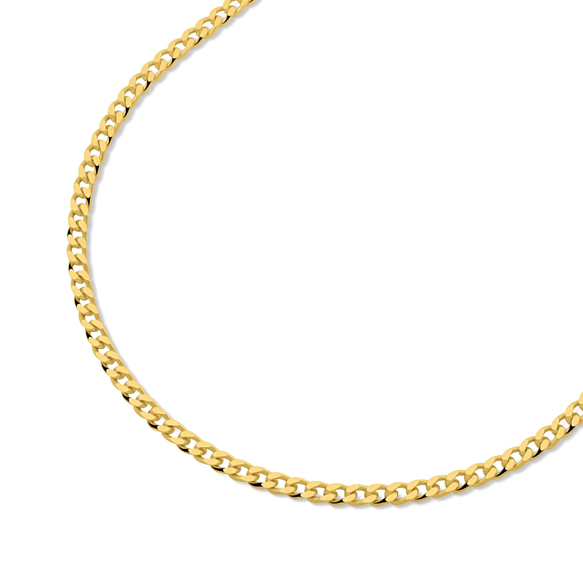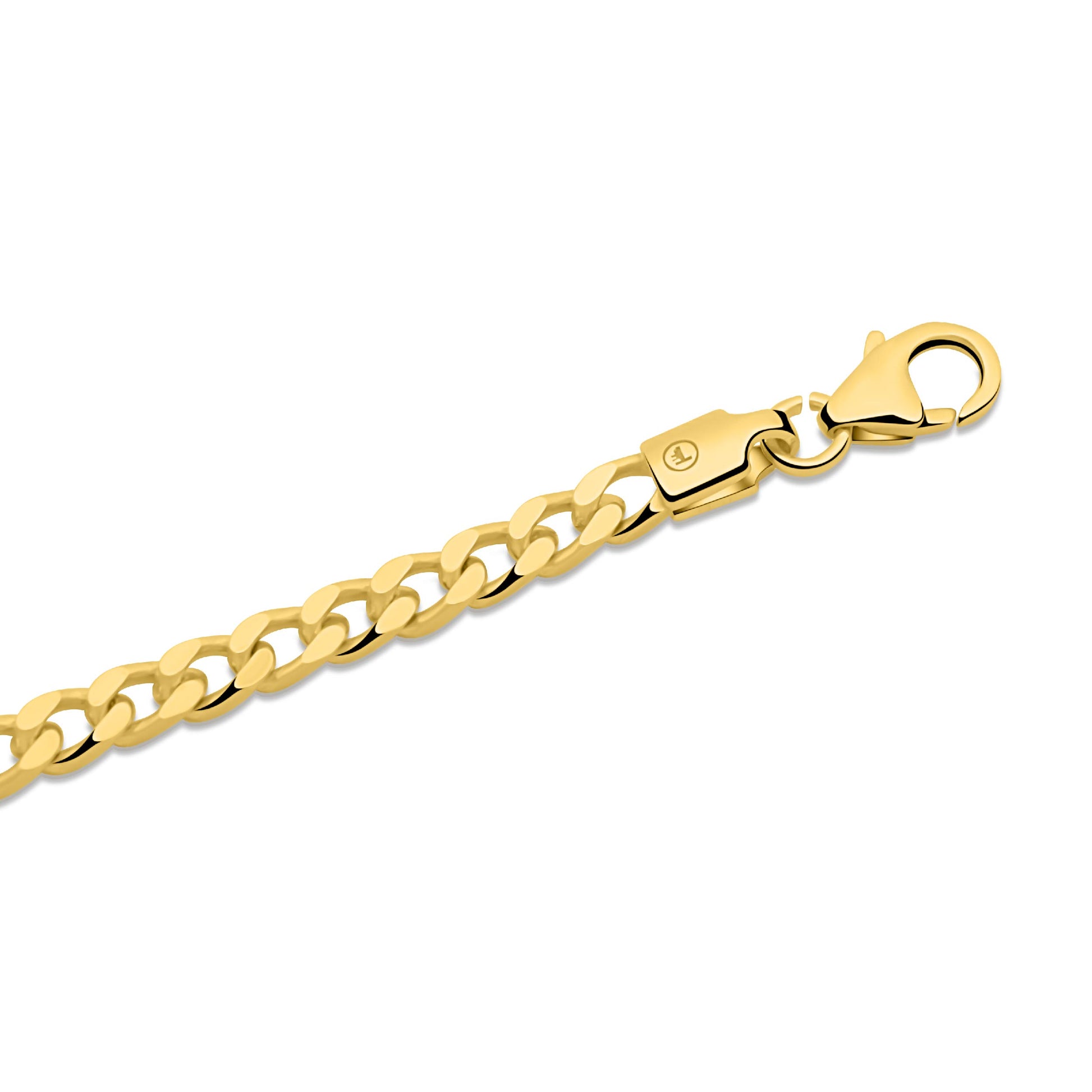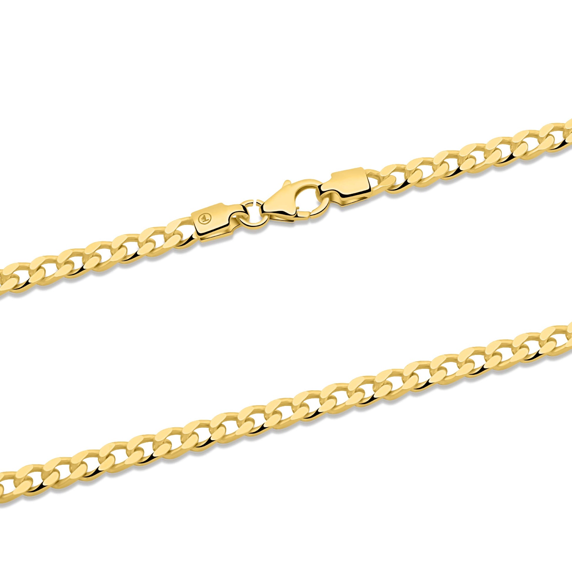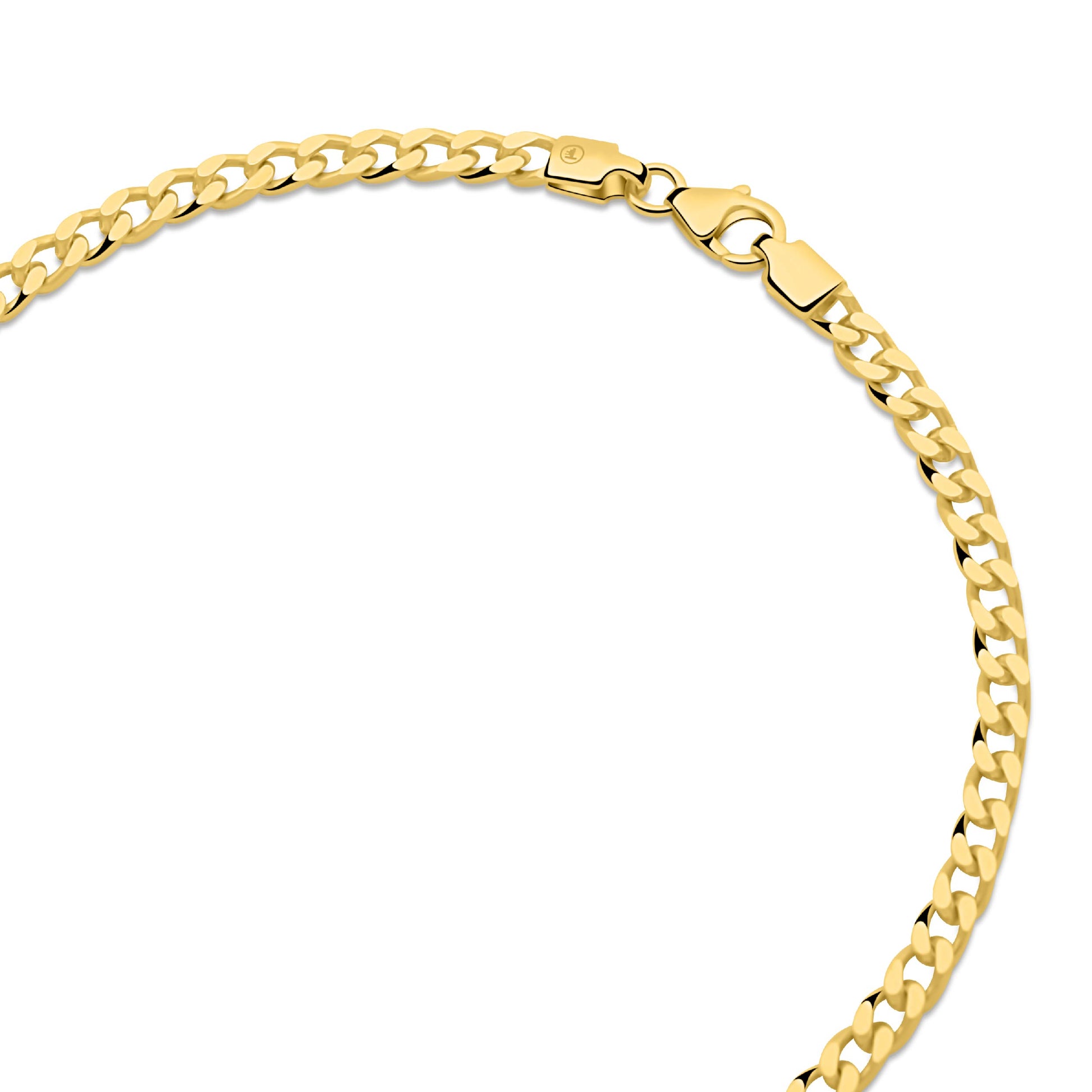 Diese elegante Panzerkette mit 3 mm Breite verbindet klassische Form mit spürbarer Präsenz. Die hochwertige 585er Vergoldung und die hochglanzpolierte Oberfläche sorgen für einen edlen Glanz, der jedes Outfit stilvoll ergänzt. Ideal zum Tragen allein oder in Kombination mit einem Anhänger.