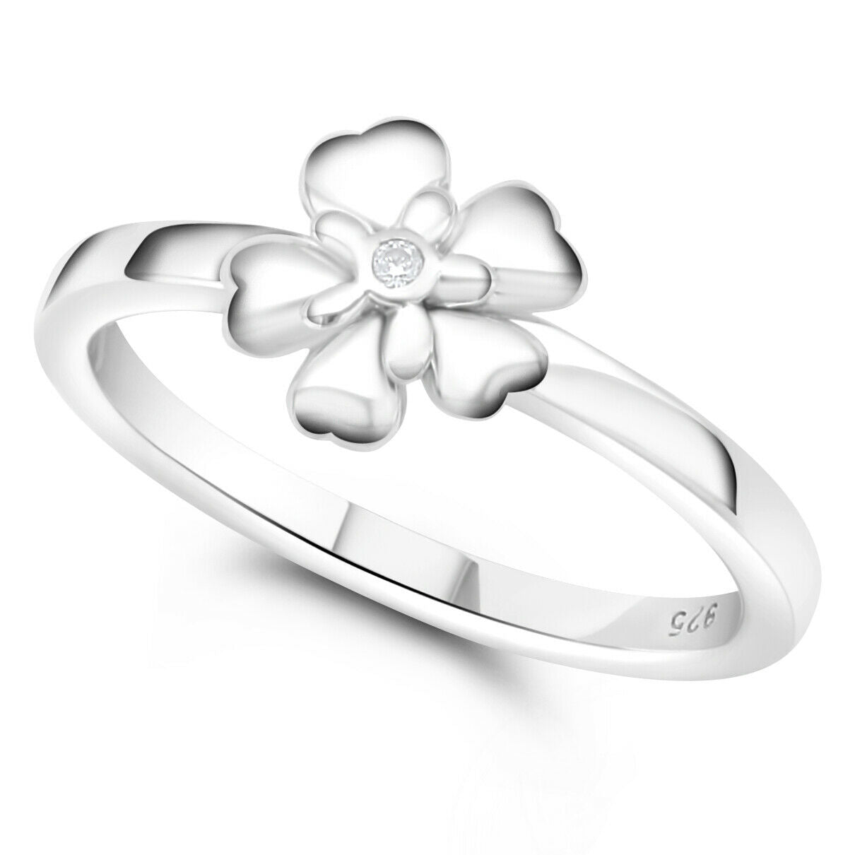 Solitär Ring Blume Herz 925 Sterling Silber Rhodiniert Zirkonia Stein Weiß Damen